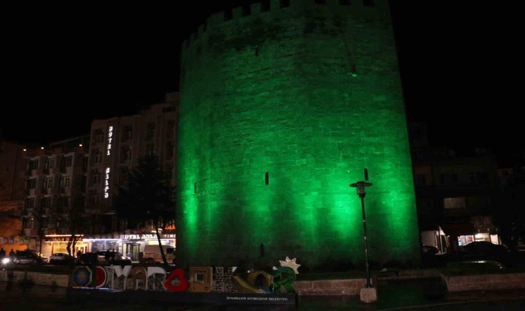 Dünya Glokom Haftası nedeniyle Diyarbakır’ın tarihi surlarına farkındalık oluşturmak ve dikkat çekmek amacıyla projektörlerle yeşil ışık tutuldu.