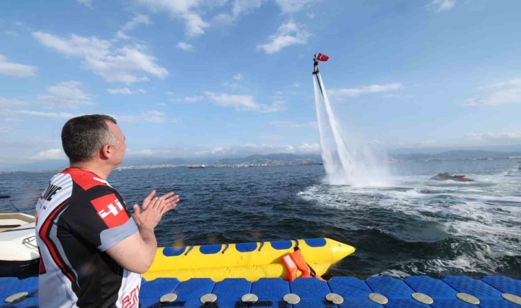 Kocaeli Büyükşehir Belediyesi’nin 3 gün boyunca düzenlediği "4. Su Sporları Festivali", Sekapark Uçurtma Tepesi Sahili’nde gerçekleştirildi. Etkinlik, dünya flyboard şampiyonu milli sporcu Kahraman Aktaş’ın gece yarısı özel ışıklı elbiseyle denizde nefes kesen flyboard gösterisiyle başladı. Etkinlik boyunca rekabet üst düzeyde olurken, farklı branşlarda yarışmalar ve gösteriler yapıldı. Festivalin üçüncü gününde gençlerin coşkusuna ortak olan Kocaeli Büyükşehir Belediye Başkanı Tahir Büyükakın, voleybol oynadı, futbol maçı yaptı, kanoya binip kürek çekti.