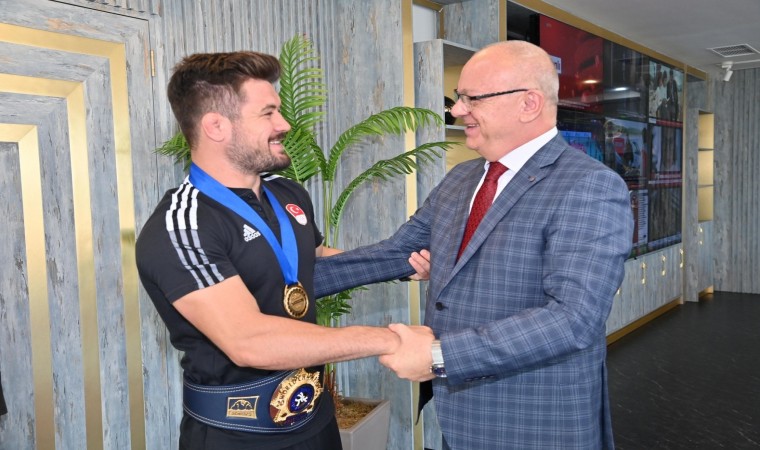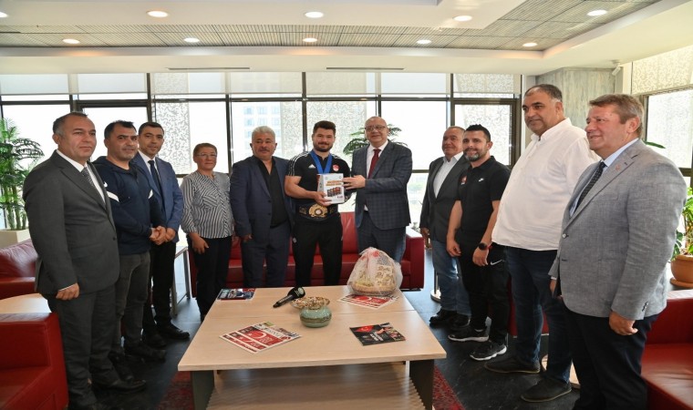 Sırbistan’ın başkenti Belgrad’da düzenlenen 2023 Dünya Güreş Şampiyonası’nda grekoromen stil 87 kiloda altın madalya kazanan ve olimpiyat kotası elde eden Akhisarlı milli sporcu Ali Cengiz, Manisa Büyükşehir Belediye Başkanı Cengiz Ergün’ü ziyaret etti. Başkan Ergün, İstiklal Marşı’nı tüm dünyaya dinleten Ali Cengiz’i tebrik etti, başarılarının devamını dileyerek, altınla ödüllendirdi.