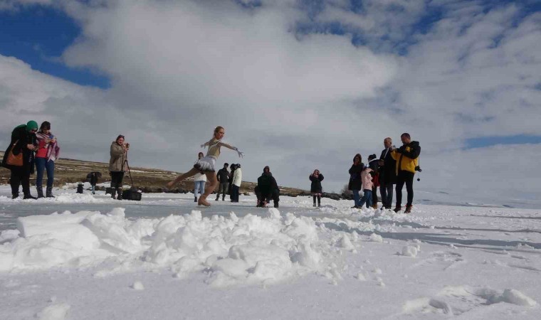 Artistik buz pateni dünya şampiyonu milli sporcuları Naz Arıcı ile Elif Sırma Özel, atlı kızak ve saz eşliğinde Çıldır Gölü üzerinde gösteri gerçekleştirdi.