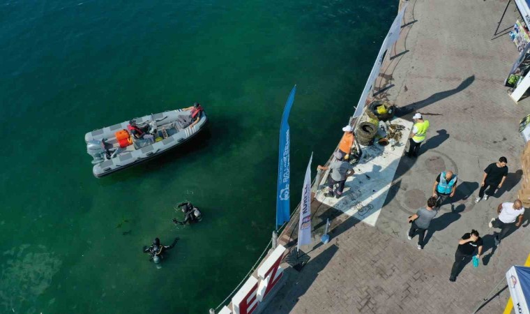 16 Eylül Dünya Temizlik Günü etkinliği çerçevesinde Tütünçiftlik sahilinde gerçekleşen kıyı ve deniz temizliğinde 432 kilo atık toplandı.