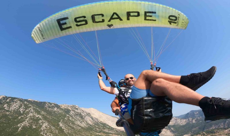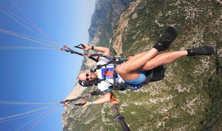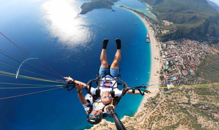 Dünyanın önde gelen serbest dalgıçlarından biri olan Alexey Molchanov, Fethiye’nin gözde turizm merkezi Ölüdeniz’de yamaç paraşütü yaparak adrenalin dolu anlar yaşadı. Su altında görmeye alışılan Molchanov, bu kez gökyüzünde görüntülendi.