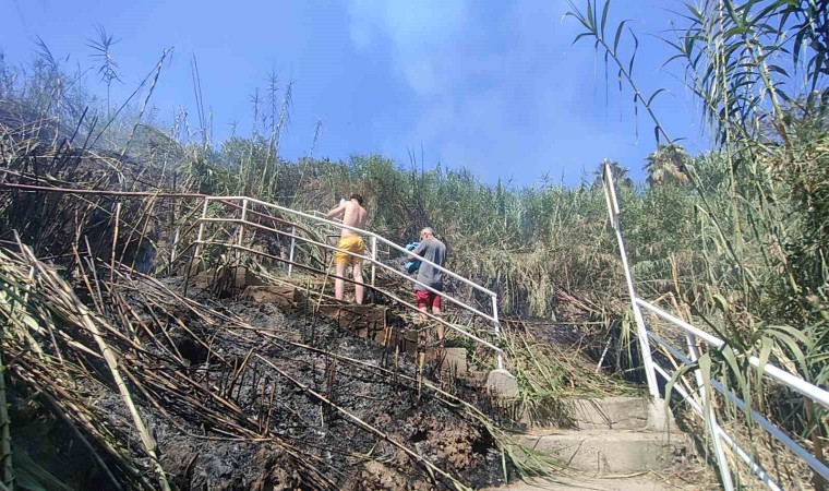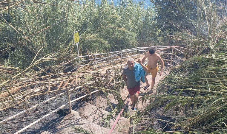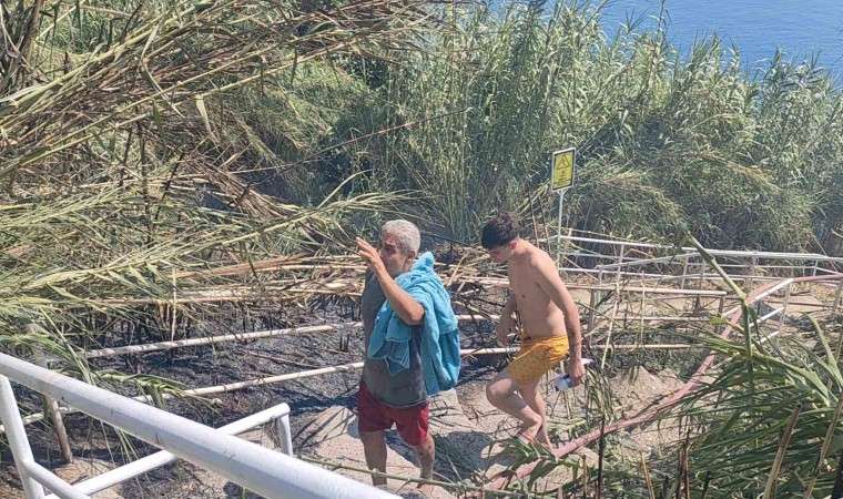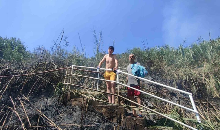 Dumanların arasından arkadaşıyla geçen Halil Acartay, “İtfaiye olmasa neredeyse yanmıştık, tekne yanaştı bizi almak için. Her tarafımızı bir anda alevler sardı. Yangın biz denizdeyken kısa sürede başladı ve büyüdü. Birisi buralara bir şeyler yapıyor. Neredeyse biz de yanıyorduk, İtfaiye olmasa kurtulmamız zordu. İtfaiyemize teşekkür ediyoruz. Aşağıda 10-12 kişi vardı. Bayağı bir telaşlandık. İtfaiyemizin emeğine sağlık. Hala yoğun bir duman var” dedi.