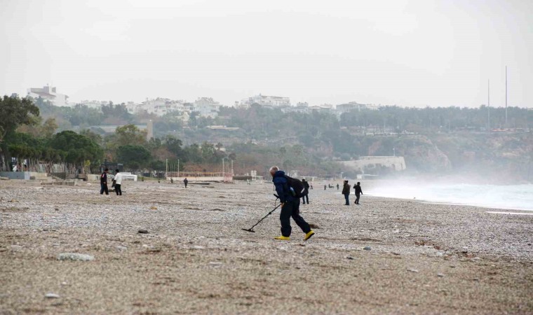 Antalya’nın dünyaca ünlü Konyaaltı sahili şiddetli yağış ve fırtınanın ardından dedektörle altın ve bozuk para arayanların adresi oldu. Birçok vatandaş ise dalgaları izlerken, yabancı uyruklu kişiler ise denize girmeye çalıştı.