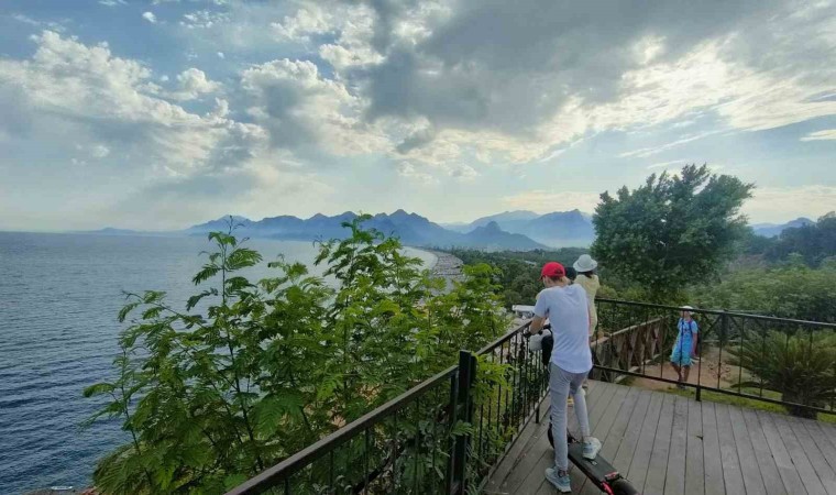 Dünyaca ünlü Konyaaltı Sahili’ni kuşbakışı gören Varyant Seyir Terası’nda manzarayı görüntülemek isteyenler, uzayan bitkilerin engeliyle karşılaşıyor.