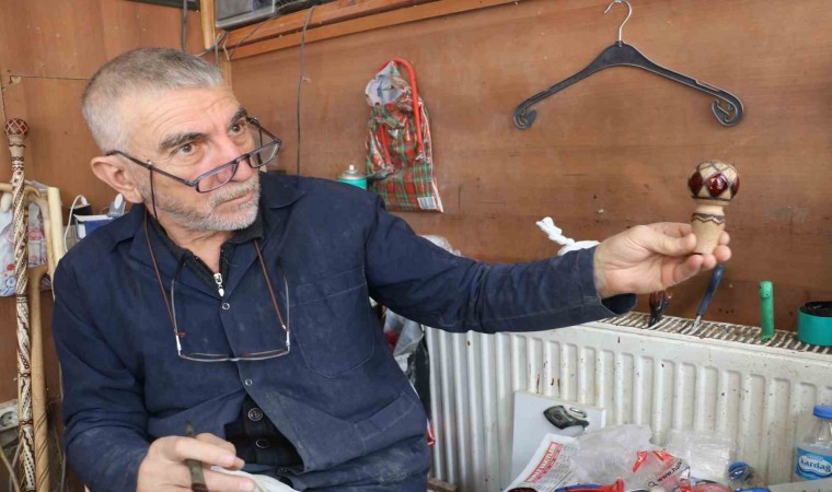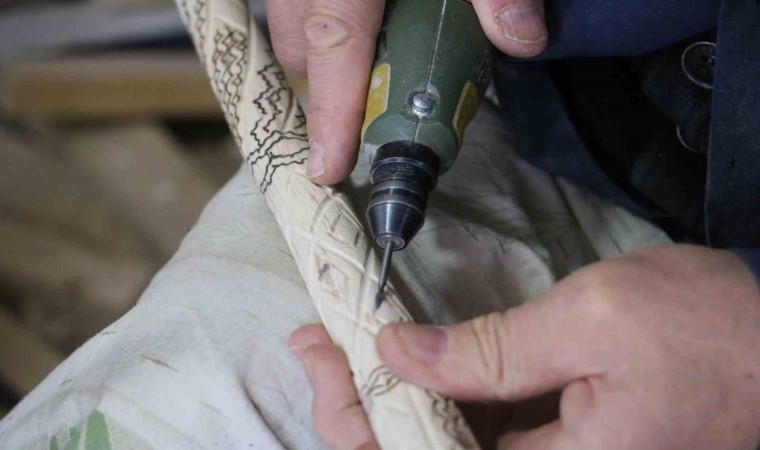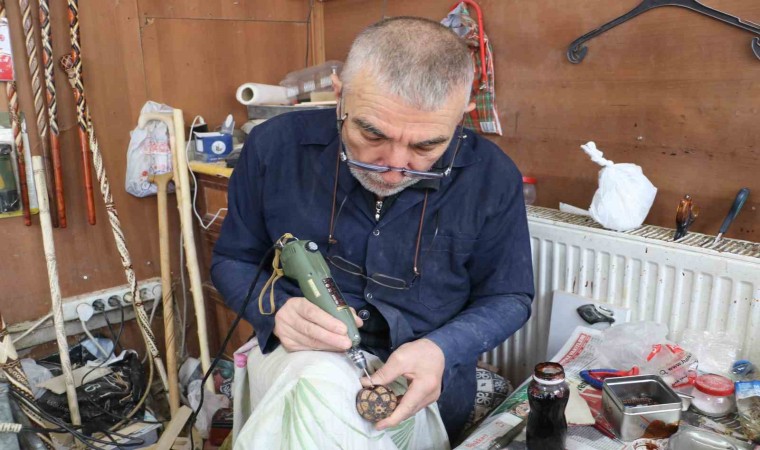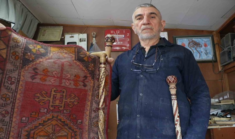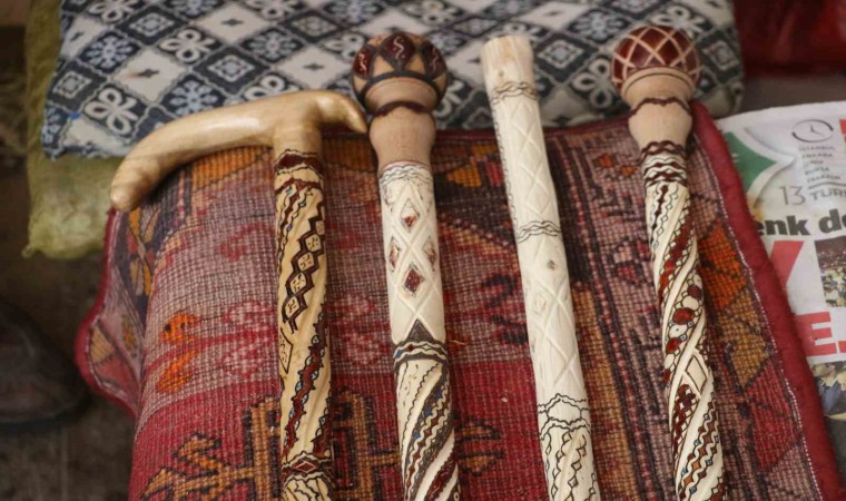 Sivas’ta baston işleme mesleğini 50 yıldır sürdüren 65 yaşındaki Erol Aşın, dünyaca ünlü Sivas kiliminin motiflerini bastonlara işleyerek yaşatmaya çalışıyor.