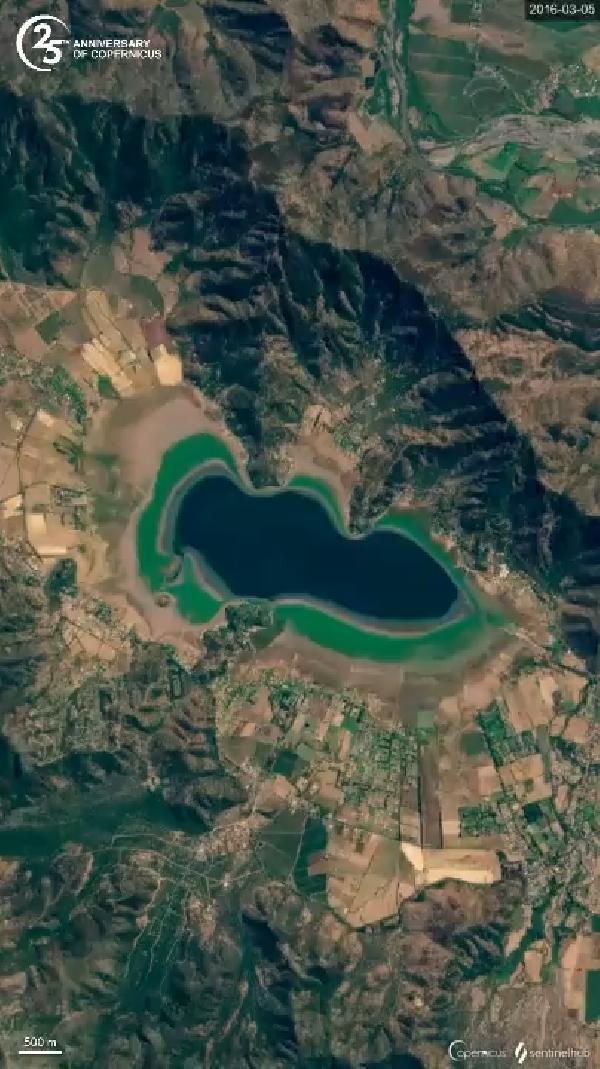 Avrupa Birliği uydularla dünya gözlem programı Copernicus, Şili’nin başkenti Santiago yakınlarındaki Aculeo Gölü’nün 7 yıllık uydu görsellerini 16 Mayıs'ta paylaşarak gölün tamamen kuruduğunu açıkladı. Copernicus açıklamasında “Göl, bir zamanlar Santiago yakınlarında büyük bir turistik cazibe merkeziydi, ancak şimdi kuru. Son zamanlarda yapılan bir araştırma, diğer faktörlerin rol oynamasına rağmen, insan faaliyetinin gölün kaybolmasının birincil nedeni olduğunu tespit etti” ifadelerini kullandı.