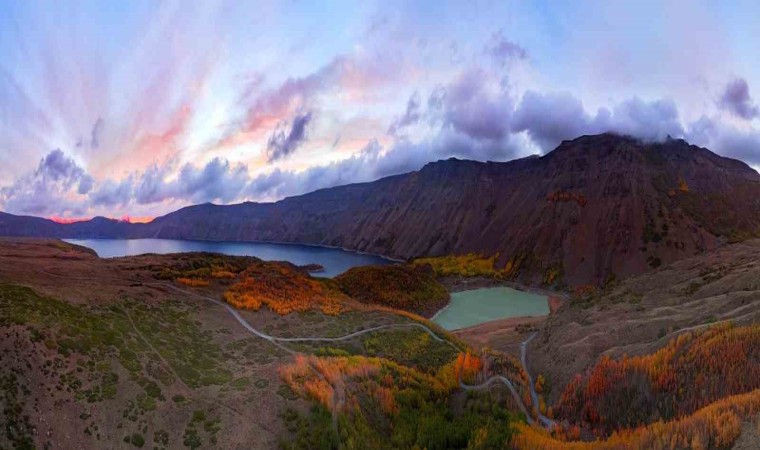 Van Gölü Havzası’nın batısında, Bitlis’in Tatvan, Ahlat ve Güroymak ilçeleri arasında yer alan ve Avrupalı Seçkin Destinasyonlar Projesi (EDEN) çerçevesinde ’Mükemmeliyet Ödülü’ alan 2 bin 250 rakımlı Nemrut Krater Gölü, muhteşem manzarasıyla ziyaretçilerini hayran bırakıyor. Bölgeye has bitki örtüsü, sıcak ve soğuk gölleri, buhar ve buz bacaları ile eşsiz bir güzellik barındıran kaldera, sonbahar mevsimi ile birlikte oluşan renk cümbüşüyle de misafirlerine adeta görsel şölen sunuyor. Sonbahar mevsimiyle birlikte Nemrut Kalderası’nın iç kısımlarındaki bitki örtüsünde oluşan kızıllık ve altın sarılığı göllerle bütünleşiyor.