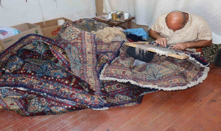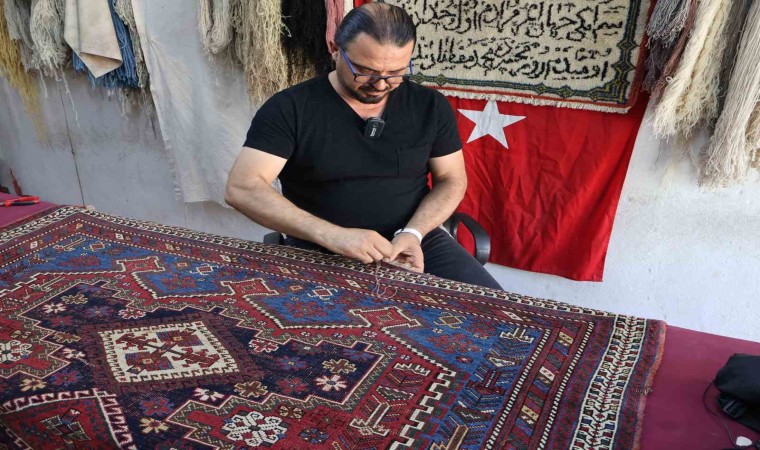 Sultanhanı beldesinde paha biçilemez yüzlerce yıllık tarihi halılar, ustaların elinde yeniden hayat buluyor.