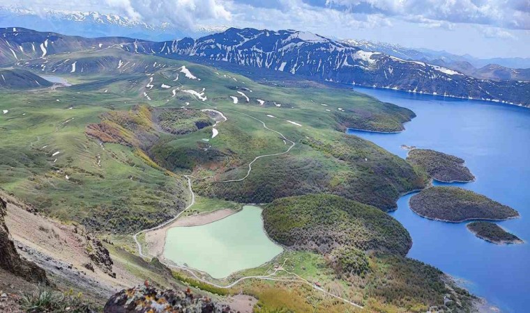 BİTLİS (İHA) – Bitlis’in Tatvan ilçesinde bulunan dünyanın ikinci büyük krater gölü olma özelliğine sahip Nemrut Krater Gölü ve Nemrut Kalderası, yaklaşık 2 bin 700 rakım yükseklikteki zirveden görüntülendi.