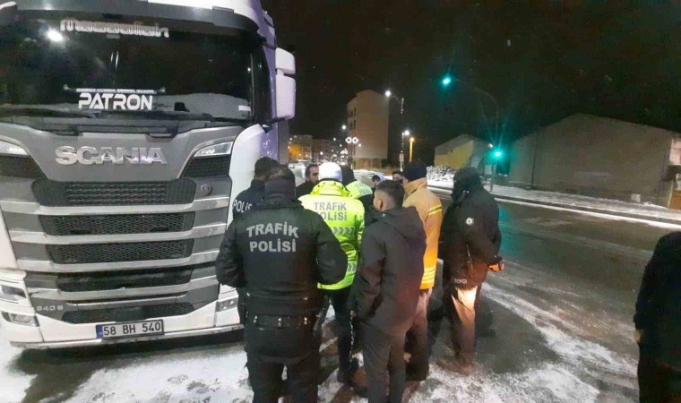 Sivas’ta polis ekiplerinin ‘dur’ ihtarına uymayan ve polislerin üzerine tır süren sürücü, gündüz saatlerinde polisten kaçarak izini kaybettirdi. Polis ekiplerinin takibini sürdüğü sürücü, gece saatlerinde tırın içinde yakalandı.