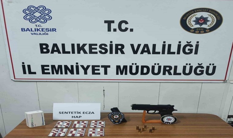Edinilen bilgiye göre, sabaha karşı saat 04.00 sularında Balıkesir İl Emniyet Müdürlüğü Asayiş Şube Müdürlüğü ekiplerinin ’dur’ ihtarına uymayan motosiklet sürücüsü, yaşanan kovalamaca sonucu Altıeylül Mahallesi Çıkmaz Sokak’ta yakalandı. Motosikletteki Halil C.Ç.’nin üzerinde 1 adet ruhsatsız silah ve 6 adet fişek, Emre K.’nın üzerinde ise 84 adet sentetik ecza hapı ele geçirildi. Polis ekipleri 2 şahsı gözaltına aldı.