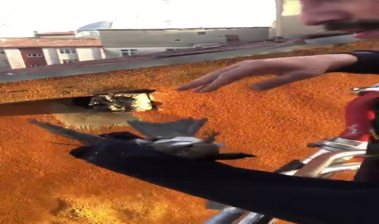 Elazığ’da bir apartmanın duvarında bulunan deliğe sıkışan ebabil kuşu, itfaiye ekipleri tarafından kurtarıldı.