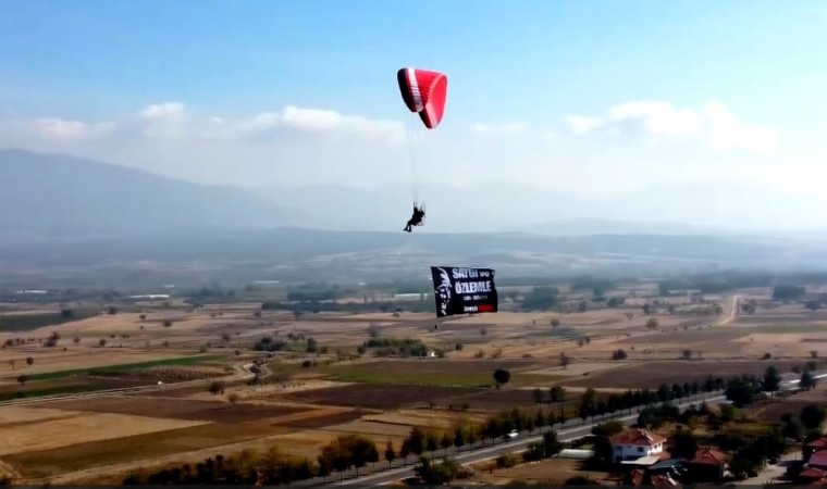 Denizli’de endüstri mühendisi Emrah Karan, Atatürk’e duyduğu özlemi, yamaç paraşütü pilotunun aracılığıyla göklerde taşıdığı “Saygı ve Özlemle. 1881-1938” yazılı pankartla farkındalık oluşturdu. Acıpayam semalarında dolaşan paraşütçüyü gören vatandaşlar, duygu dolu anlar yaşadı.