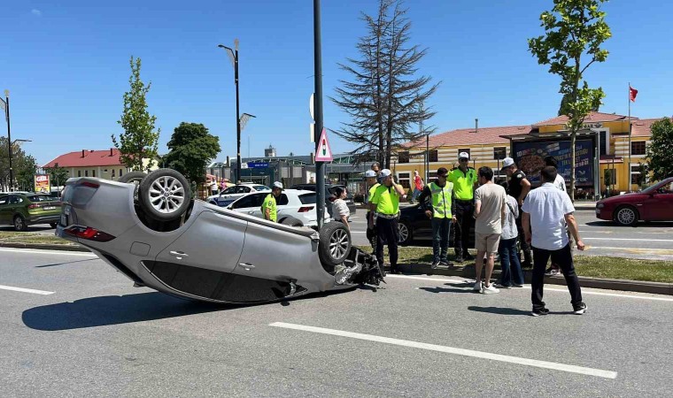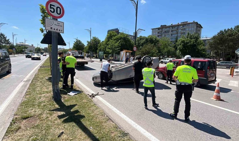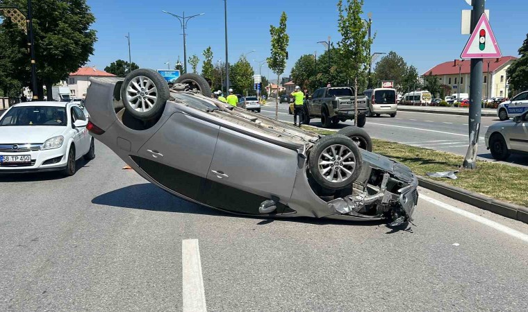 Sivas’ta kontrolden çıkan otomobil aydınlatma direğine çarptıktan sonra ters döndü. Kazada sürücü yaralandı.