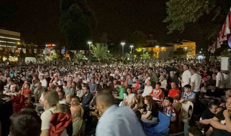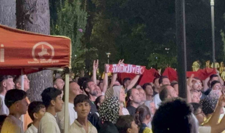 Avrupa Şampiyonası çeyrek final maçı Düzce’de millet bahçesinde canlı veriliyor. Düzceliler birlik oldu, binler tek yürek Türk Milli takımına destek veriyor.