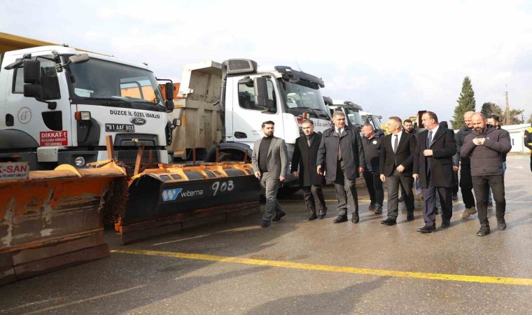 Düzce’de kar yağışı ile birlikte İl Özel idaresi ekipleri sahada çalışmaya başladı. Düzce Valisi Selçuk Aslan’da İl Özel İdaresi kademesini ziyaret ederek, kış tedbirleri dahilinde araçların göreve hazırlığını denetleyerek, hazırlık çalışmaları hakkında Genel Sekreter Mehmet Hayri Şen’den bilgi aldı.