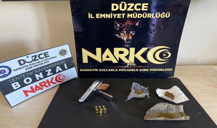 DÜZCE (İHA) – Düzce’nin merkez ilçesine bağlı Konuralp’te polis ekiplerince yapılan uygulamalarda uyuşturucu ve ruhsatsız silah ele geçirildi.
