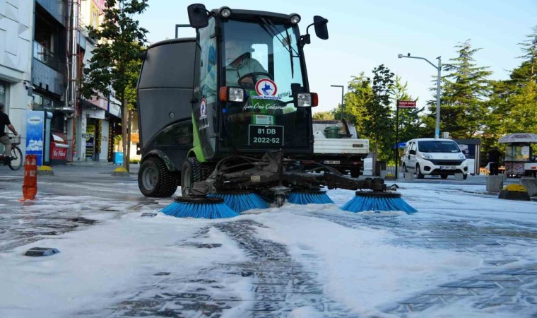 DÜZCE(İHA) – Düzce Belediyesi temizlik işleri müdürlüğü İstanbul Caddesi deterjanla yıkanarak temizlendi.