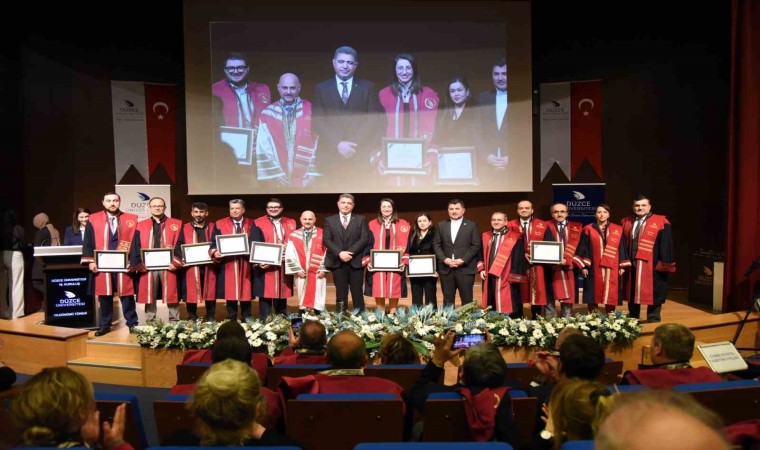 Yaptıkları başarılı akademik çalışmalarla, Akademik Başarı Ödülü, Atıf Ödülü, Proje Ödülü, Patent Ödülü, İnovatif Tez Ödülü ve Prestij Ödülü almaya hak kazanan öğretim üyelerine belge takdimiyle devam eden “Düzce Üniversitesi 18. Kuruluş Yıl Dönümü Töreni”, yeni unvan alan öğretim üyelerine akademik cübbelerinin giydirilmesi ile sona erdi.