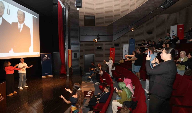Uluslararası öğrencilerin Türkiye-İspanya ilişkileri üzerine yaptıkları sunum ile başlayan program, İspanya Santiago Üniversitesi’nde gelen Carla Gonzalez Lopez ve Angel Vazquez Rendo’nun katkılarıyla zenginleşti. Düzce Üniversitesi öğrencisi Ömer Mersin’in Erasmus deneyimlerini paylaştığı video gösterimi ile devam eden etkinlikte, İspanyol öğrencilerin telaffuz yarışması ve müzik dinletisi ile keyifli anlar yaşandı.