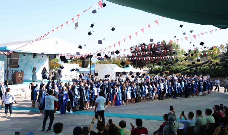 Mezuniyet Belgelerinin takdimi sonrasında, Mezuniyet Töreni’nin en heyecanlı bölümü olan Kep Atma Töreni’nde keplerini geleceklerini temsilen gökyüzüne atan Düzce Üniversitesi öğrencileri, heyecan ve duygu dolu anlar yaşayarak meslek hayatlarına adım attı.