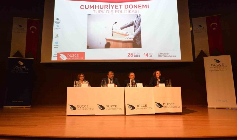 DÜZCE(İHA) – Düzce Üniversitesi Rektörlüğü tarafından Cumhuriyetimizin 100. yıl etkinlikleri dahilinde düzenlenen “Cumhuriyet’in 100. Yılında Cumhuriyet Dönemi Türk Dış Politikası” adlı panel gerçekleştirildi.