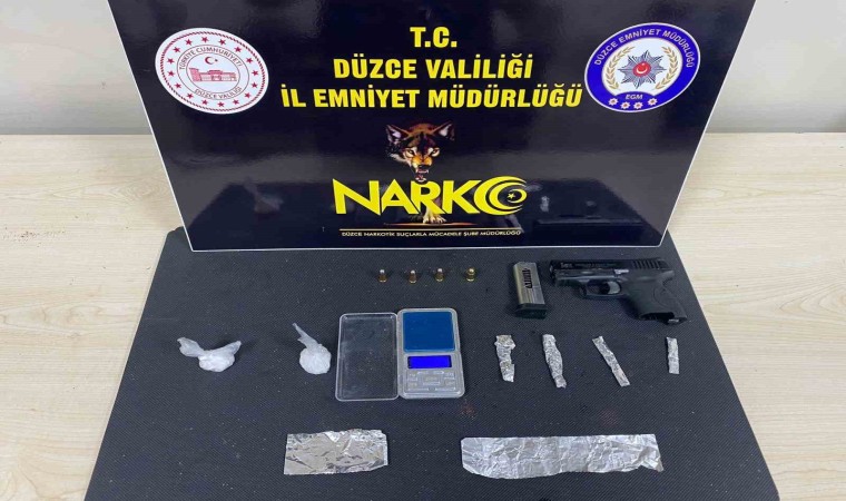 Düzce’de uyuşturucu ile mücadele sürüyor. Düzce Cumhuriyet Başsavcılığının koordinesinde Narkotik Suçlarla Mücadele Şube Müdürlüğü ekiplerince sokak satıcılarına yönelik Konuralp bölgesi ve Burhaniye Mahallesi’nde çalışma yapıldı. Yapılan çalışmalarda; uyuşturucu madde ticareti yapmak suçundan işlem yapılan E.D. (23), Y.A. Ö. (22) ve C.S.(35), ile uyuşturucu madde bulundurmak veya kullanmak suçundan işlem yapılan; S.G.(45), E.B.(32), T.C.(21) ve S.D. (32) isimli şahısların üzerinde ve ikametlerinde yapılan aramada 4 bin 550 adet sentetik ecza, 8 parça halinde 20 gram metamfetamin, 2 gram esrar, hassas terazi, 1 adet 7.65 çapında ruhsatsız tabanca ve tabancaya ait 4 adet fişek ele geçirildi.