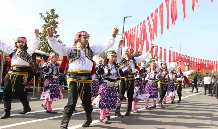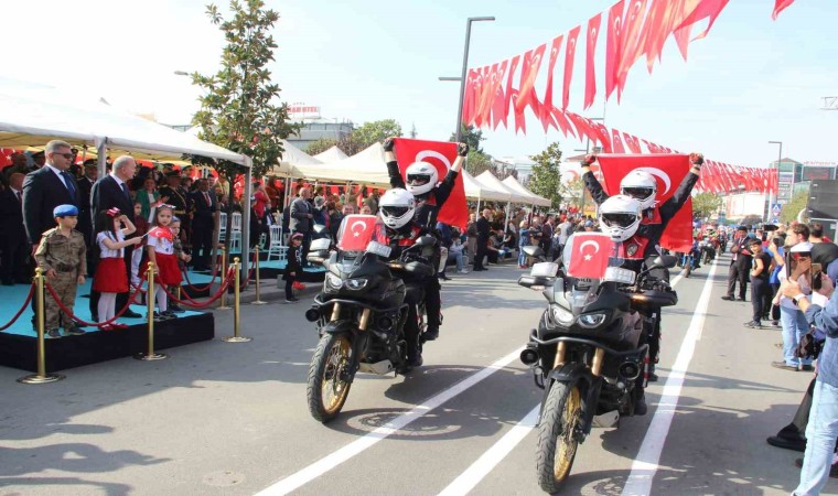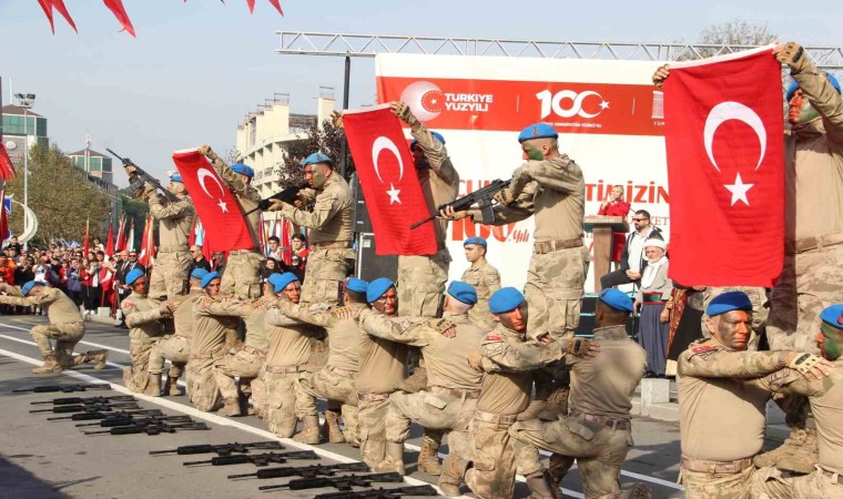 Cumhuriyet Bayramı’nın 100. yıl dönümü, Düzce’de coşkuyla kutlandı. 7’den 70’e her yaştan vatandaş ellerindeki Türk bayraklarıyla kutlamalara katılırken, askerlerin yaptığı silahlı gösteri büyük ilgi gördü.