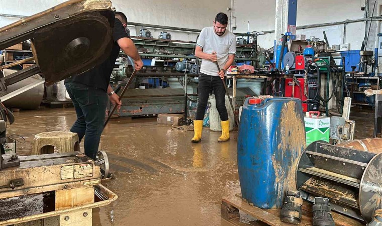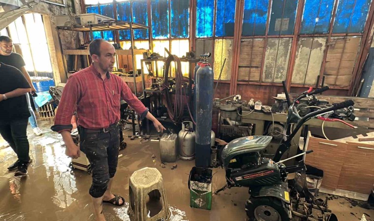 Düzce’de taşan Melen Çayı Küçük Sanayi Sitesini sular altında bıraktı. Yüzlerce işyeri suların altında kalırken, suların çekilmesi ile birlikte selin bıraktığı izler temizlenmeye başladı. Haftaya temizlik ile başladıklarını belirten işletmeci Tahir Şen, “Hasanlar Barajı’nın taşma riskine karşılık kapaklarının açılmasından dolayı Melen Çayı’nın yükselmesi ve sanayinin su basmasına sebep oldu. İşyerlerimizin hali şu anda görüldüğü gibi. Sabah işletmeye geldiğimizde 60 santimetreye yakın bir su mevcuttu. Dükkanın kapılarını açıp tahliyeye başladık. Makinelerimizin çoğu hasarlı çalışacak durumda değiller. Olduğumuz bölümde 300 bin liranın üzerinde bir hasar var. Yan tarafta bulunan nalburiye kısmında ise 1 milyonun üzerinde” ifadelerini kullandı.