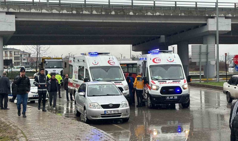 Kaza, şehirlerarası otobüs terminali kavşağında meydana geldi. Alınan bilgilere göre, Erol Ö. idaresindeki Beyköy Belediyesi’ne bağlı 81 DS 405 plakalı halk otobüsü, Aziz Yıldırım Bulvarı yönüne giden Kemal A. idaresindeki 81 DB 044 plakalı iş makinesi ile çarpıştı. Kazayı görenlerin 112 Acil Çağrı Merkezine yaptığı ihbar üzerine bölgeye sağlık ve polis ekipleri sevk edildi. Kazada otobüs şoförü Erol Ö. (62) ile 7 yolcu yaralandı. Yaralılar ambulanslarla Düzce’deki çeşitli hastanelere kaldırılarak tedavi altına alındı. Kaza nedeniyle kısa bir süre kapanan yol, araçların kaldırılmasının ardından normale döndü.