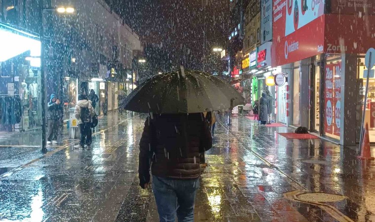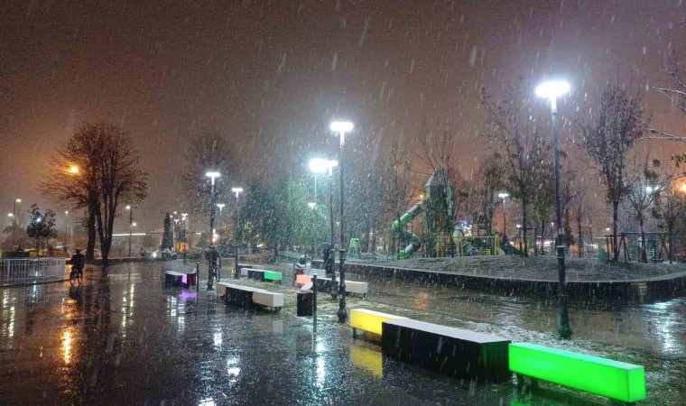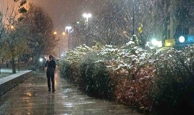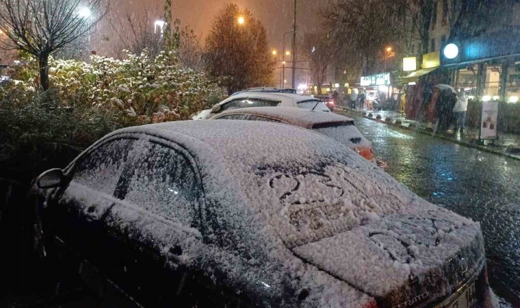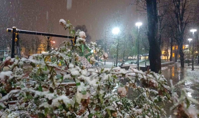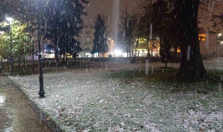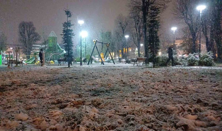 Düzce’ye mevsimin ilk karı yağdı, şehir merkezinde kartpostallık görüntüler oluştu.