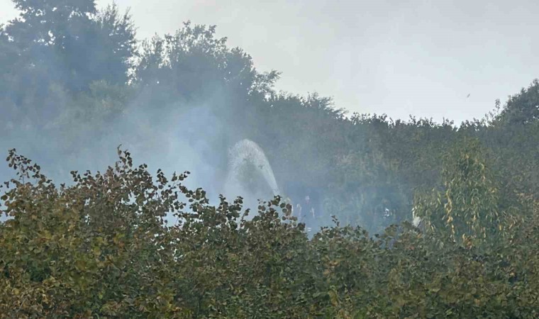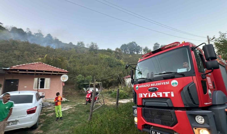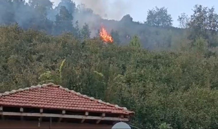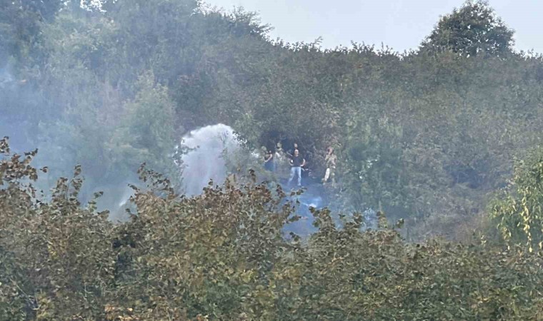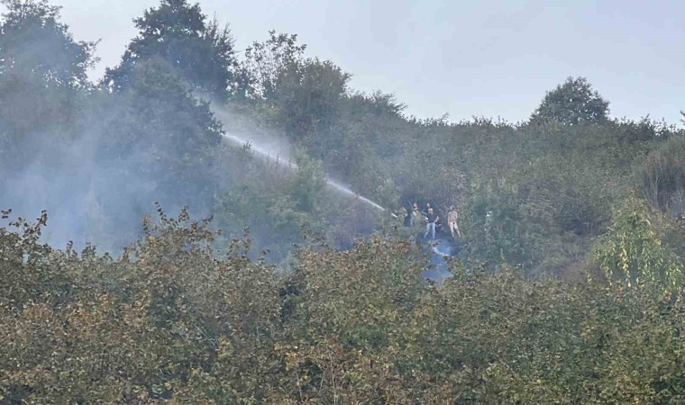 Düzce’de fındıklıkta çıkan yangın ormana sıçradı. Alevler güçlükle söndürüldü.