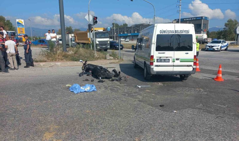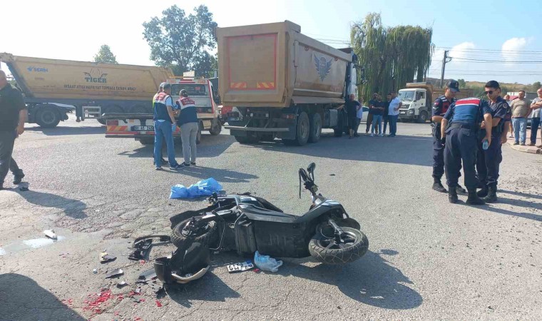 Düzce D100 Karayolu Gümüşova mevkiinde motosikletin hafriyat kamyonunun altına girdiği kazada 1 kişi hayatını kaybetti, 1 kişi yaralandı.