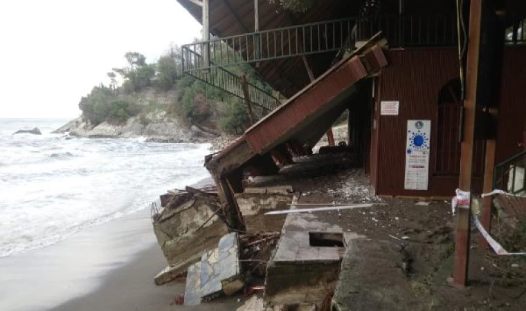 Düzce’de plajdaki tesis, fırtına ve dalgalarla yıkıldı