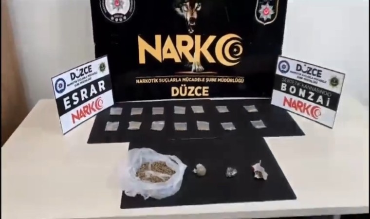 Düzce İl Emniyet Müdürlüğü Narkotik Şube Müdürlüğü ekiplerince belirlenen 5 ayrı adrese uyuşturucu operasyonu gerçekleştirildi. Operasyonda 20 parça halinde toplam 67,4 gram sentetik kannabinoid maddesi ele geçirildi.
