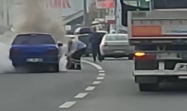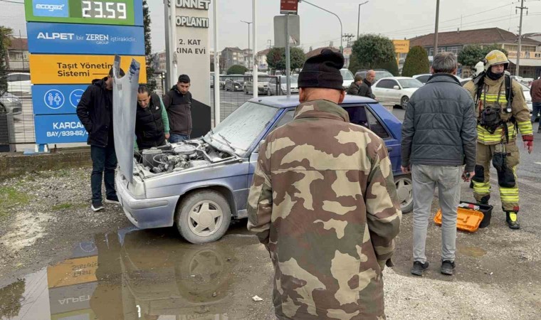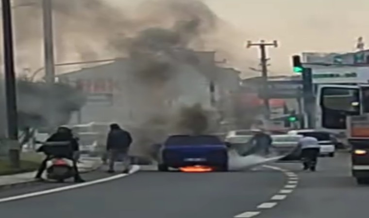 Düzce’de seyir halindeki bir otomobil, motor kısmından bir anda alev aldı. Yangın, çevredeki sürücülerin yangın tüpleriyle müdahalesiyle söndürüldü.