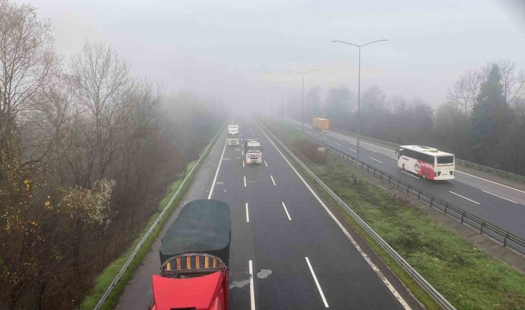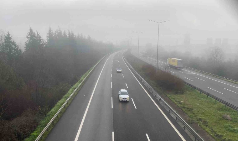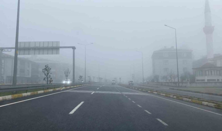 Düzce’de etkili olan sis, kent merkezinde ve otoyolda görüş mesafesini 20 metreye kadar düşürdü.