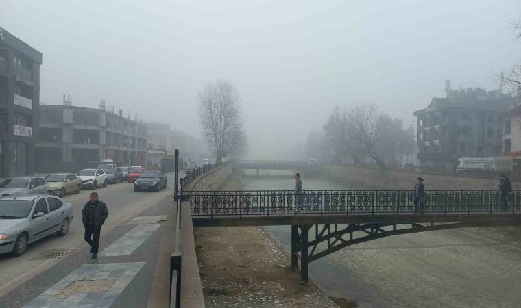 DÜZCE (İHA) – Düzce kent merkezinde sabah saatlerinde sis yüzünden göz gözü görmüyor. Görüş mesafesi zaman zaman 20 metreye kadar düştü.