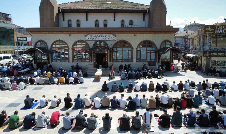 Düzce’de tam kapanmaya rağmen Ramazan ayının son cuma namazını kılmak isteyen vatandaşlar, Cedidiye, Büyük ve Burhaniye Camisine akın etti. Camide yoğunluk oluşturan vatandaşlar, son cuma namazını kıldı, dualar etti. Cami içerisindeki kalabalık, yer olmaması sebebiyle bahçeye taşındı. Ramazan ayının son Cuma namazı havadan dron ile de görüntülendi.