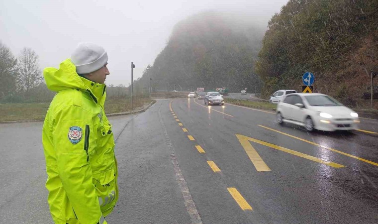 Avrupa ile Anadolu’yu birbirine bağlayan en önemli karayolu geçiş noktalarından olan Bolu Dağı’nda gece saatlerinden beri etkili olan ve öğlen saatlerinden itibaren yolda tutunmaya başlayan kar yağışı ile birlikte Düzce Emniyet Müdürlüğü Bölge Trafik Tescil ve Denetleme Şube Müdürlüğü ekiplerinin de kar mesaisi başladı. Her kış mevsiminde geçit vermemesi nedeniyle zaman zaman trafiğe kapanan Bolu Dağı’nda bu yıl olumsuzluk yaşanmaması ve trafiğin akıcılığını devam ettirmesi için ekipler teyakkuza geçti. Güzergah üzerinde sürekli devriye atan ekipler, ayrıca güvenli yol kenarlarında durarak sürücüleri yolda kaymalara karşı uyarıyor. Ekipler, karın yolda yoğun birikinti yaptığı bölgeleri de karayolları ekiplerine bildirerek, trafikte yaşanabilecek olumsuzlukların önüne geçmeye çalışıyor.