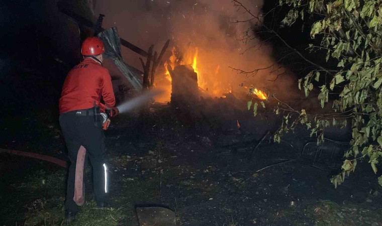 Düzce’de geceyi aydınlatan yangın güçlükle söndürülürken, tek katlı 2 ev ve yanında bulunan ardiye kullanılamaz hale geldi.