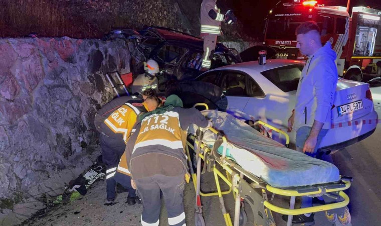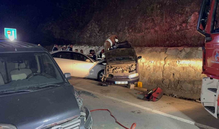Düzce’de 3 aracın karıştığı zincirleme trafik kazasında 1 kişi öldü, 3 kişi yaralandı. Araçlardan biri kanala uçarak dik kaldı.