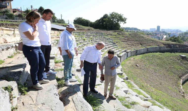 Heyet, tiyatronun üst bölümünde kurulu bulunan otağ çadırının revize edilmesi, seyir terası yapılması, ahşap oturma ve yürüyüş yolları oluşturulması çalışmaları ile ilgili bilgi alışverişinde bulundu. Görüşmelerde, antik yapının zarar görmemesi noktasında azami gayret gösterileceği vurgulandı. Gerekli izinler alındıktan sonra yapılacak bu düzenlemelerle turizme kazandırılması planlanan antik tiyatronun korunması hedeflenirken, gelen ziyaretçilerin de tarihle iç içe ağırlanması sağlanarak, eşsiz seyir keyfi sunulacak.