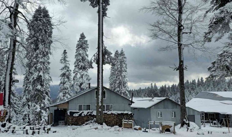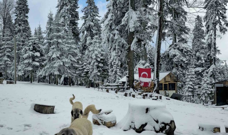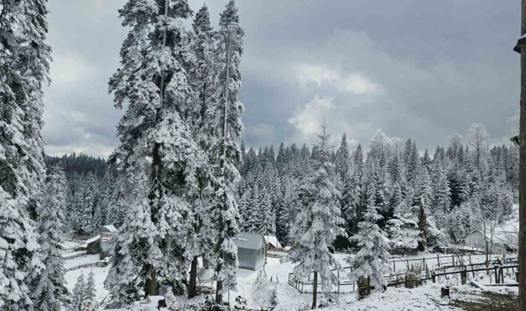 Düzce’nin yüksek tepelerinde kar yağışı etkili olunca, bölge beyaz örtü ile kaplandı.