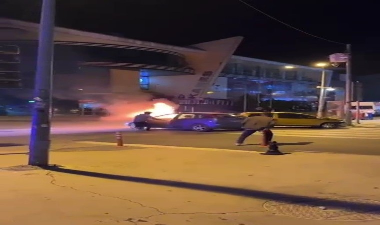 Öte yandan, bir kişinin iddiaya göre cep telefonunu almak için yanan otomobilinin içine girdiği anlar cep telefonu kamerasınca kaydedildi.