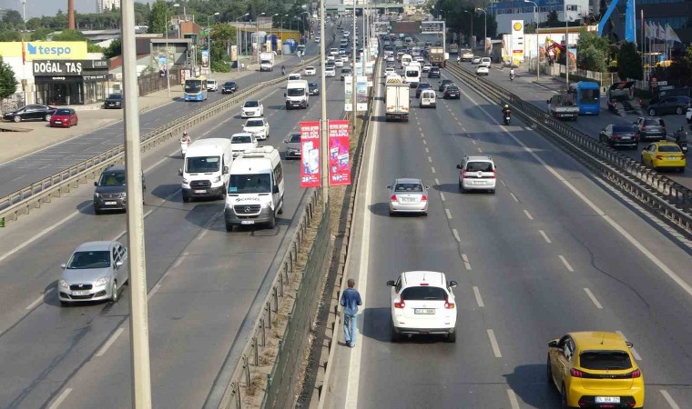 Yıllardır E-5 karayolunda yürüyen Selami Salman, yolda yürürken dron ile görüntülendi.
