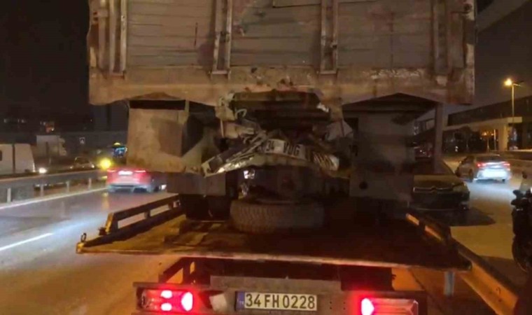 İstanbul’un Pendik ilçesi Kaynarca E-5 karayolunda Tuzla istikametinde, kontrolden çıkan motosiklet kamyonete arkadan vurdu. Çarpmanın etkisiyle kamyonetin altında sıkışan motosiklet sürücüsü hayatını kaybetti.
