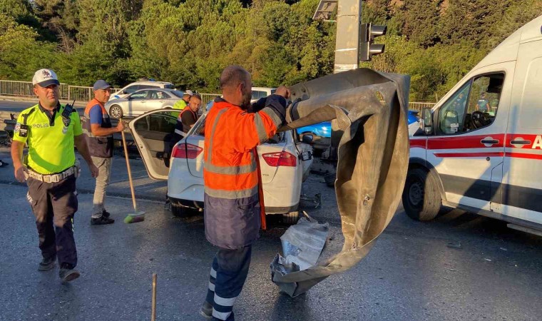 Kaza nedeniyle E-5 Karayolu’nda trafik yan yoldan sağlanırken otomobilin kaldırılmasının ardından trafik normale döndü.