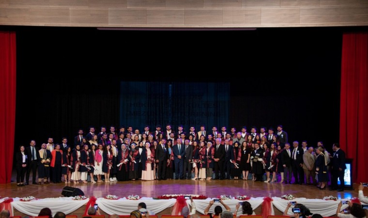 Rektör Levent daha sonra öğrencileri ve ailelerini tebrik etti. Son olarak öğrencilere seslenen Rektör Prof. Dr. Akın Levent, “Mesleğinizin sizlere kattığı değeri sadece hekimlik yaparak değil aynı zamanda akademi camiası başta olmak üzere diğer alanlarda da yaşatmanızı istiyorum. Unutmayalım ki Cumhuriyetimizin ilk Dışişleri Bakanlarından olan Tevfik Rüştü Aras’ta bir hekim olarak çok değerli hizmetlerde bulunmuştur” şeklinde konuşarak konuşmasını sonlandırdı.